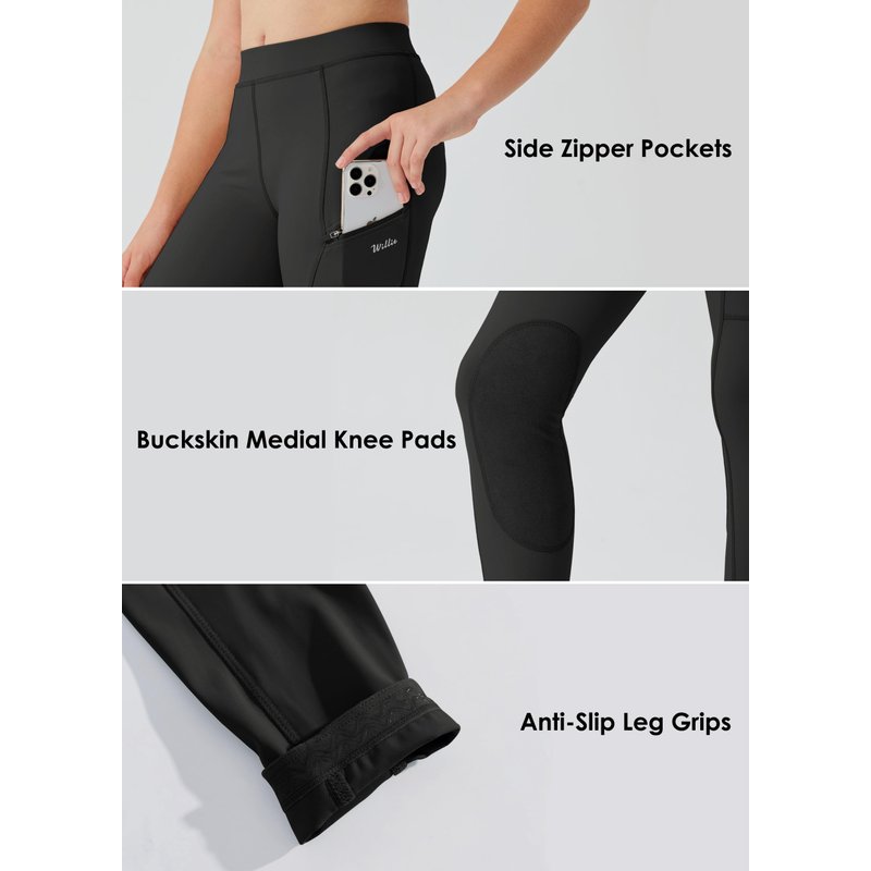 Willit Girls Horse Riding Pants Tights Kids Equestrian Breeches Knee-Patch Youth Schooling Tights Zipper Pockets Black M