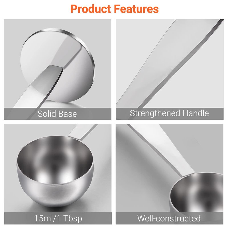 - 【Material】 Quality stainless steel coffer scoop with tamper (15 ml), High quality food safety materials, non-toxic and tasteless.
