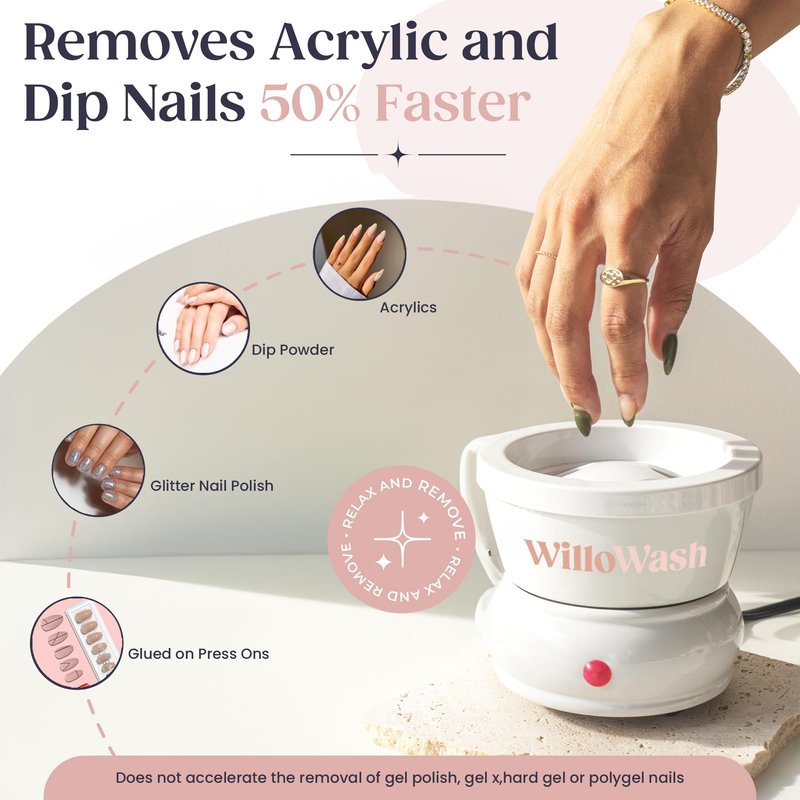 - Specifically Designed for Acrylic and Dip Nails: The WilloWash does not accelerate the removal of gel based products. Remove your fake nails from the comfort of your own home and save time from the nail salon!