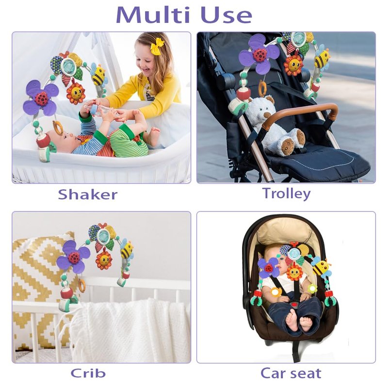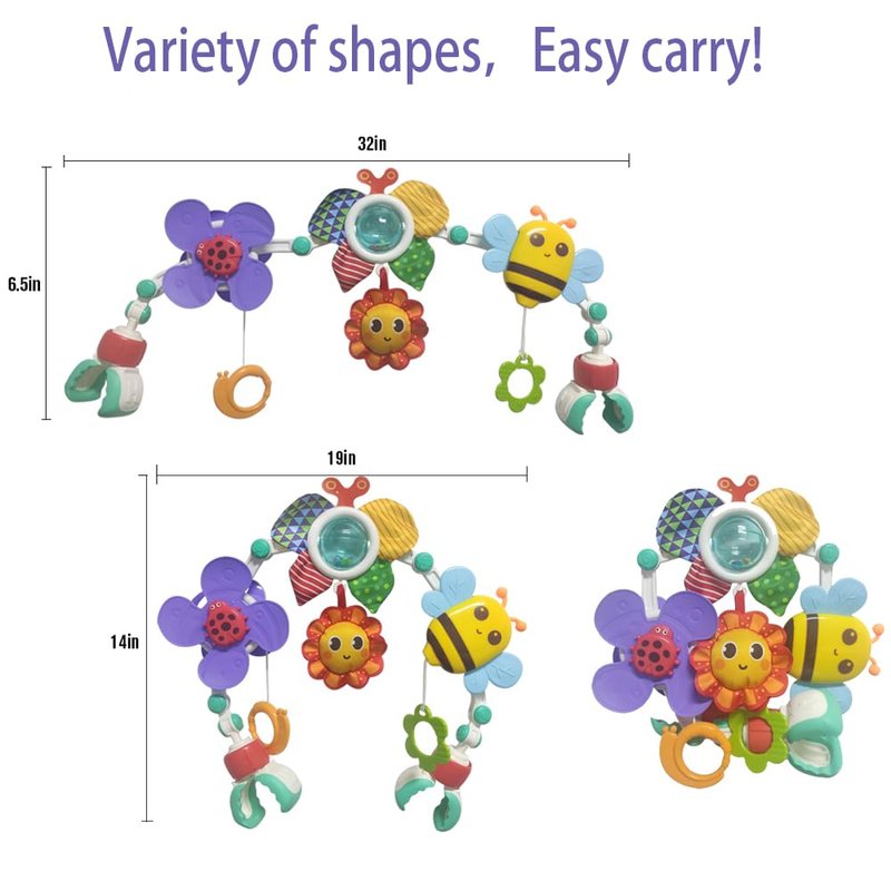 - 🧩 Parent-Child Interactive Toys: The bassinet mobile toy can be detached individually that you can hang it on your finger to interactive play with baby. Little hand grasps teethers and pulls down, the windmill will rotate and the bee will vibrate its wings. It attracts babies with beautiful colors and sounds to play with so that they will not boring when traveling.