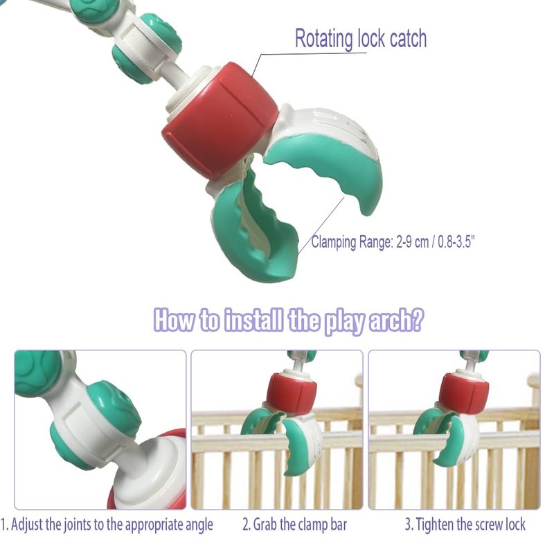 - ❤️Clamping Range: 2-8 cm / 0.8-3.5". The hanging angle of the Bassinet toy can be easily adjusted to fit the toy within baby's field of vision. It folds easily into any shape and will not accidentally hurt baby due to the drop. Please measure your pram play, stroller, crib, car seat before order, check if our arch mobile can fit or not.