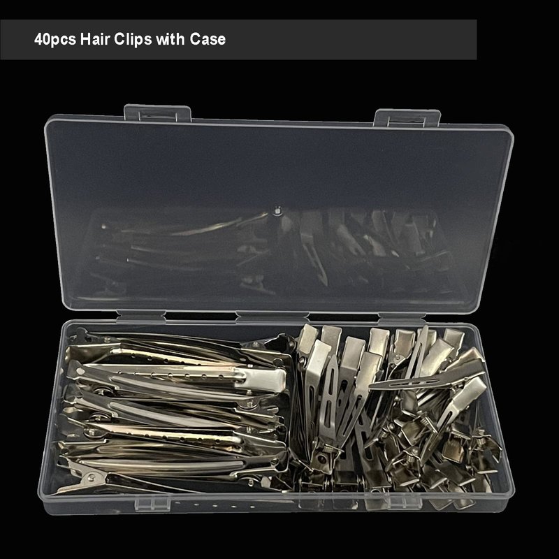 WILNAKWEL 40 Pcs Metal Duck Billed Hair Clips for Styling Sectioning,Silver for Women Long Hair, Alligator Curl Clips for Hair Roller,Salon,Bows DIY with Case