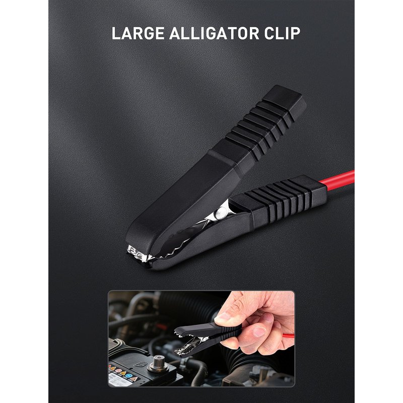 - [Large Alligator Clip with Extended Spring Wire] Large size crocodile clip is designed for strong clamp and effortless one-handed operation. 135 inch premium PU spring wire offers more flexibility, lighter and more durable than normal cable wires, will definitely improve your working efficiency and testing convenience
