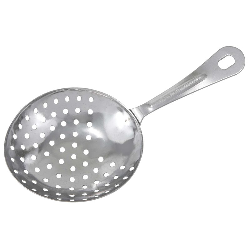 - Perforated spoon especially for straining crushed mint leaves for mint julep