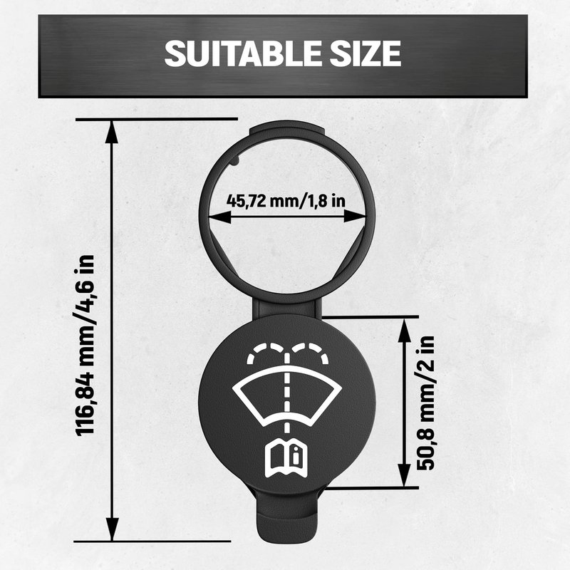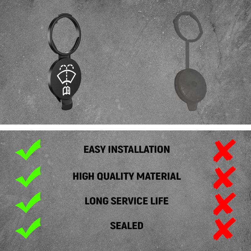 - Perfect Fit: This washer fluid cap is not original but the quality that it provides is nothing less than the original. It fits perfectly as we have designed this product keeping in view the parameters of the original product. The edges of the lids are polished carefully to remove the roughness and burrs.