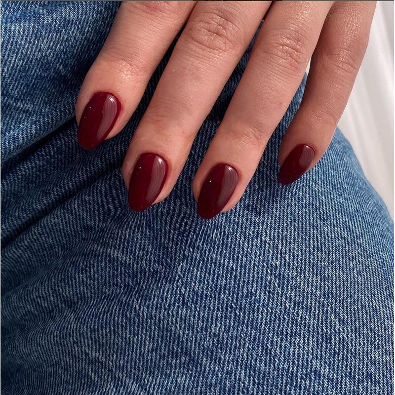 Wine Red Press On Nails Short Oval,KQueenest Thick Acrylic Nails Press Ons,Short Almond Nails Glue on,Natural Round Fake Nails,Burgundy One Color Gel Stick On Nails Set For Tiny Average Wide Nail Beds