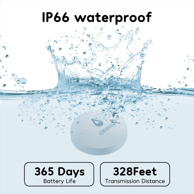 - IP66 Waterproof - Fully sealed waterproof housing, allowing you to use water immersion for a long time in high humidity areas. We adopted the stable and reliable solution so that the equipment can report well without missing reports. Connect multiple sensors, you can safely place the sensor in the kitchen, washing machine, etc.