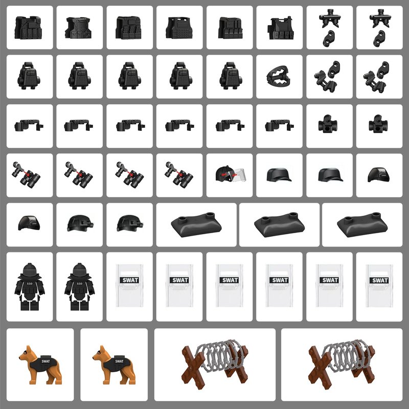 - 【Military Set】 This STEM armory building block set provides military enthusiasts with a wealth of weapon accessories, including two ammunition boxes, military dogs, protective nets, modern guns, and a variety of other weapon accessories to meet the needs of a variety of combat scenarios. Please refer to the pictures for detailed product information and accessories list so that you can fully understand each item