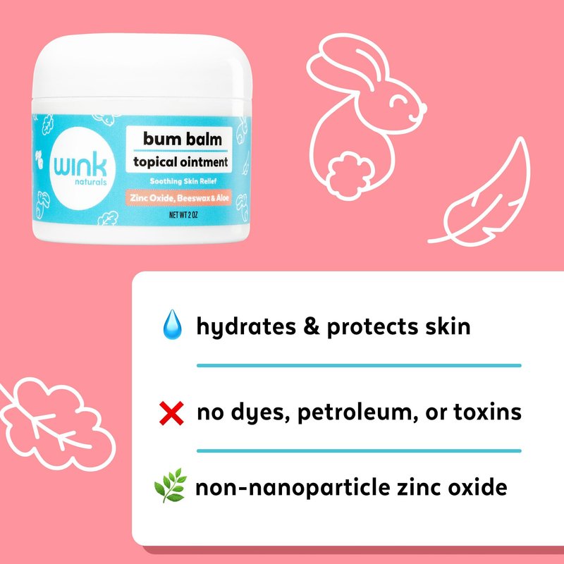 Wink Well Baby Diaper Rash Cream- Bum Balm Baby Diaper Cream for Irritated Skin and Insect Bites- Natural Moisturizing Baby Rash Ointment with No Toxins, Dyes, Fragrances, Parabens, Or BHA- 2 Oz