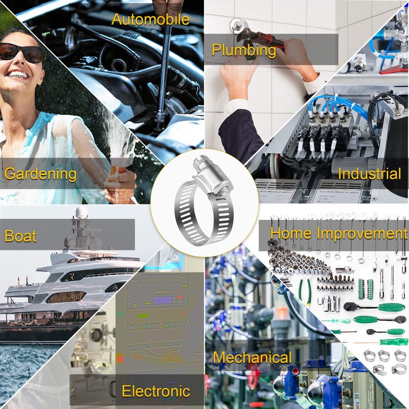 - Wide Applications: WINL stainless steel hose clamps are perfectly suitable for home, automobile, industrial, gardening, mechanical, electronic, boat, marine and more. The hose clamps are perfect for seal hoses, water pipes, plumbing, pipes, fittings, cables, tubes, fuel lines, cars, trucks, SUV; indoor or outdoor use. WINL hose clamps are ideal for installation in tight-fitting or hard to reach places.