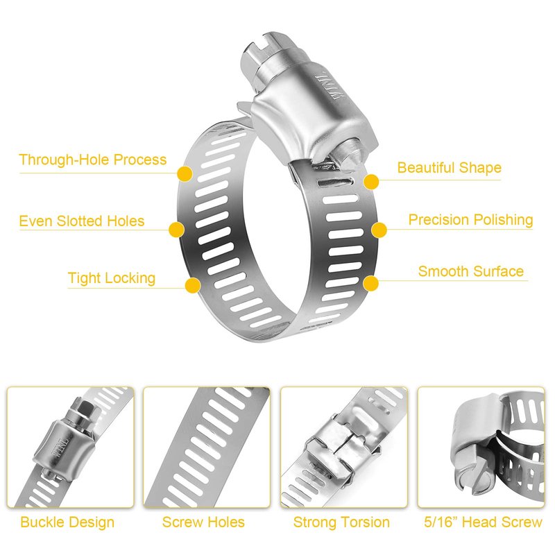 - Effortless Installation: WINL size 16 hose clamps are designed with through-hole process, even slotted holes, steel belt through hole, tight locking and strong torsion force. The stainless steel hose clamps have stronger tightening force and and easy to install. WINL worm gear hose clamps are beautiful shape, precision polishing with smooth surface without burrs.