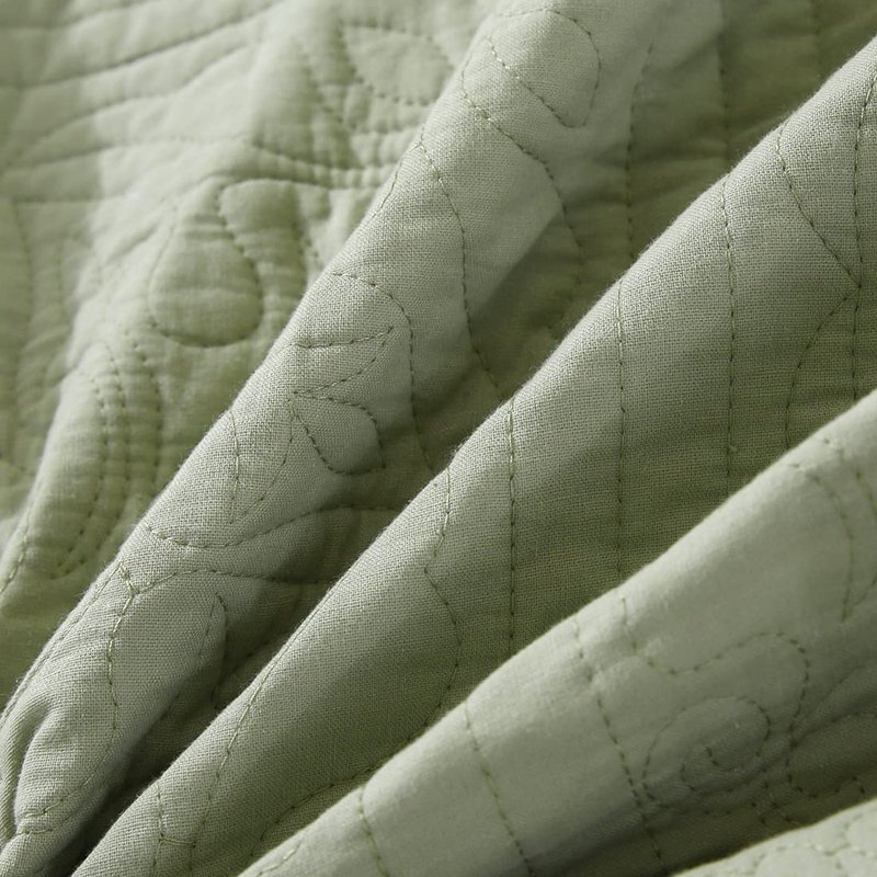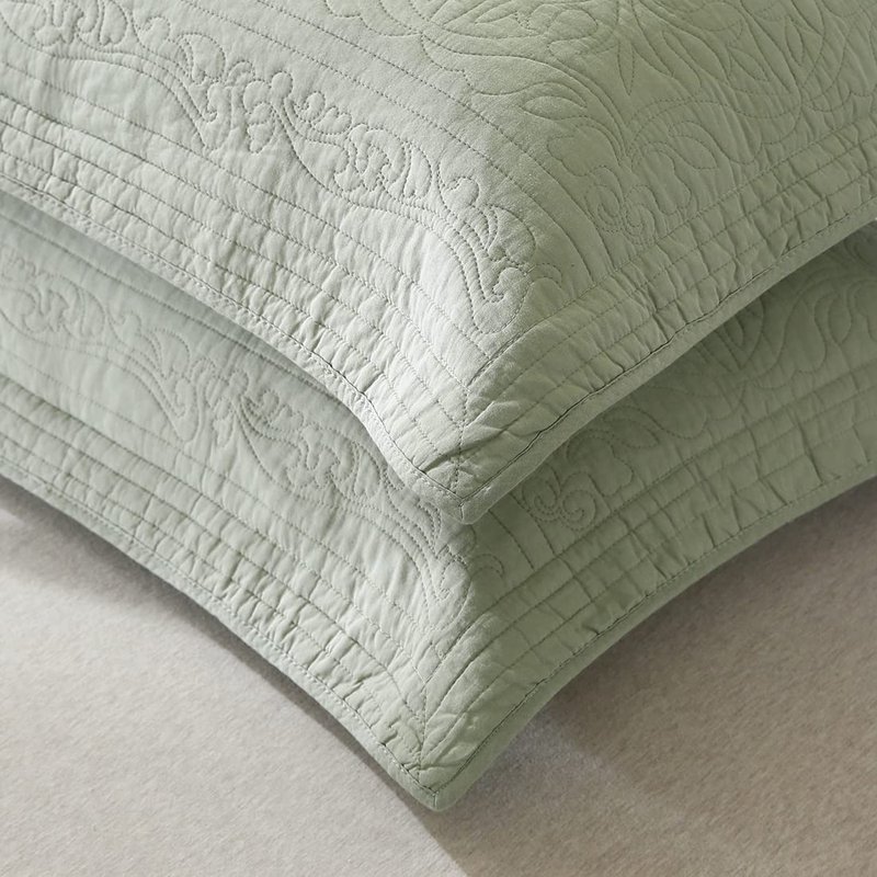 WINLIFE 100% Cotton Quilted Pillow Sham Floral Printed Pillow Cover Sage Green, Standard Size, 20 x 26 Inch