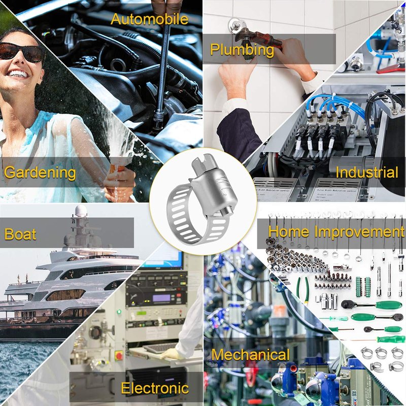 - Wide Applications: Winlong stainless steel hose clamps are perfectly suitable for home, automotive, industrial, gardening, mechanical, electronic, boat, marine and more. The hose clamps are perfect for seal hoses, water pipes, plumbing, pipes, fittings, cables, tubes, fuel lines, cars, trucks, SUV; indoor or outdoor use. Winlong hose clamps are ideal for installation in tight-fitting or hard to reach places.