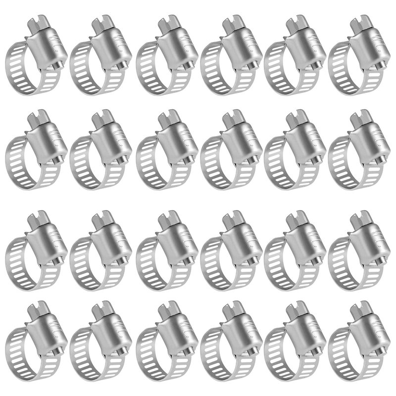 Winlong 1/2'' Stainless Steel Hose Clamps - 24PK Size 4 Small Worm Gear Drive Hose Clamps Clamping Range 1/4 Inch to 5/8 Inch (6mm-16mm) for Automotive Plumbing, 1/4'' Hose Clamps, 1/2'' Hose Clamps