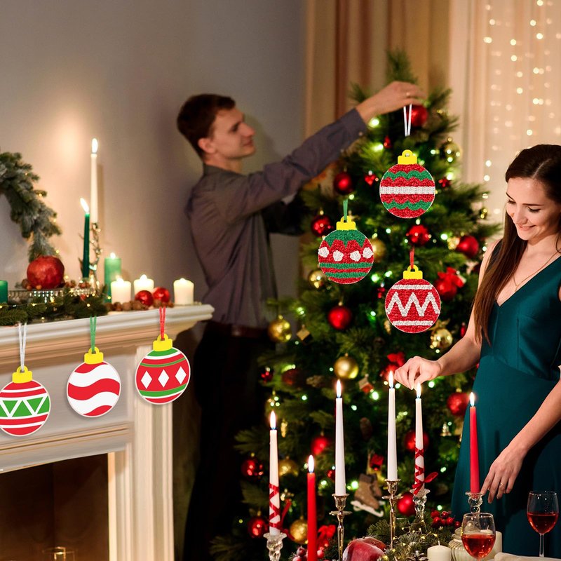 - Special Stylish Designs: this Christmas crafts set includes 6 charming Christmas ball designs, each thoughtfully crafted for a delightful hanging display; The classic red, green, and white colors enhance your holiday decor, creating a warm and inviting atmosphere in any space