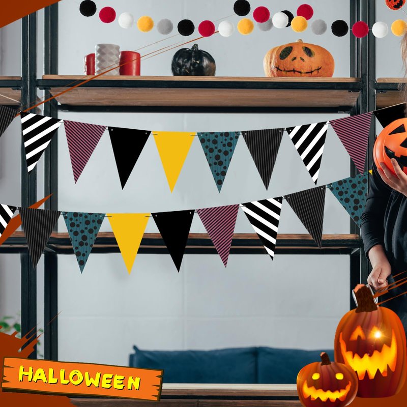Features: Versatile Color: Our black happy birthday decorations fit most party themes. The elegance of the color black adds a sophisticated charm to your party. Suitable for classic birthday celebrations or special themes like horror movie or Halloween birthday parties. Optimized for a Mysterious Atmosphere: Add some spookiness to your birthday party with our black banners' mysterious look. Crafting an evocative Halloween or horror movie-themed party is now easier than ever. Make your birthday unforgettable with our specially designed horror atmosphere. Specifications: Material: paper, feltMain Color: blackSize: 118.11 inches/ 3 metersPackage includes: 1 x Felt ball garland2 x Happy birthday banners2 x Pennant bannersNotes: Manual measurement, please allow slight errors on size. The color may exist a slight difference due to different screen displays.