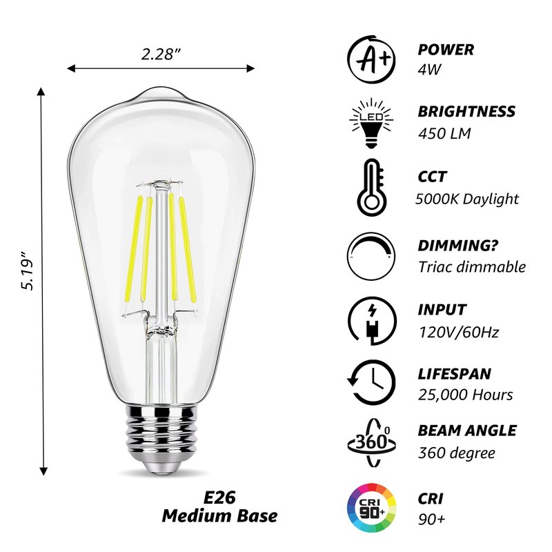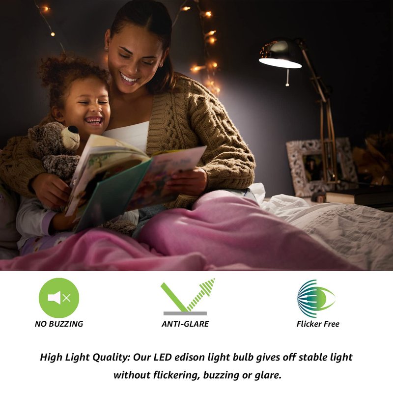 - High Light Quality: The vintage led bulbs adopt high efficiency driver, emit ambient light without buzzing, new LED filament bulb tech anti-glare and without flickering.