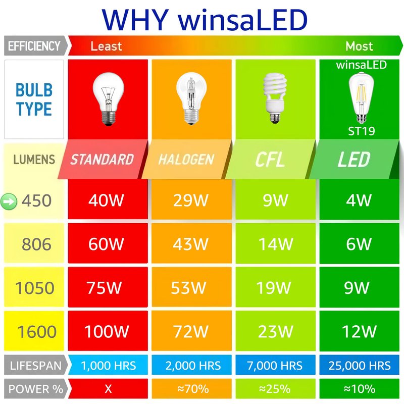 winsaLED Dimmable LED Edison Bulbs 40 Watts Equivalent, 4 Watt LED Filament Bulb, 5000K Daylight ST19 Light Bulb, 450LM E26 Vintage LED Bulbs for Light Fixtures 12 Pack