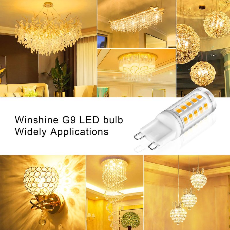 Dimmable from 0-100%The dimmable g9 LED bulbs can be dimmed to the desired level of brightness. No flicker while changing the dim level.Adapt to most dimmersNo need to change your original transformers, easy to replace old bulbs.Truly Flicker-FreeProduct Specification:Bulb Base: G9Dimmable: YesVoltage: AC120V 50 / 60HzWattage: 4W( 40 or 60 Watt g9 halogen equivalent)Brightness: 400Lumens Color Temperature: Soft white (2700 Kelvin)CRI:85+ RaMaterial: PC Milky Cover + ceramics baseEnergy efficiency class: A +Lifespan: 30000HDimension(Width & Length): 0.61*1.98inch;Package:10x Dimmable 4W G9 LED bulbsLED Bulb + 3 Year Hassle Free WarrantyAny problem/concern when using our product, just feel free to contact usApplication:Creating a cozy and 2700k soft white full glow ambient atmosphere, perfect for kitchens, living rooms, bedrooms and hallway. Perfect lighting source for crystal chandelier, table and floor lamps, pendant fixtures ,ceiling fixtures wall lamp, bedside light, atmosphere light.etc.