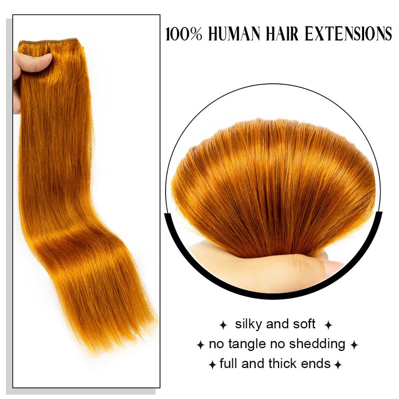 Winsky Copper Red Hair Extensions Real Human Hair - One Piece Remy Hair Extensions Clip on 70gram for Women (14inch, Copper Red)