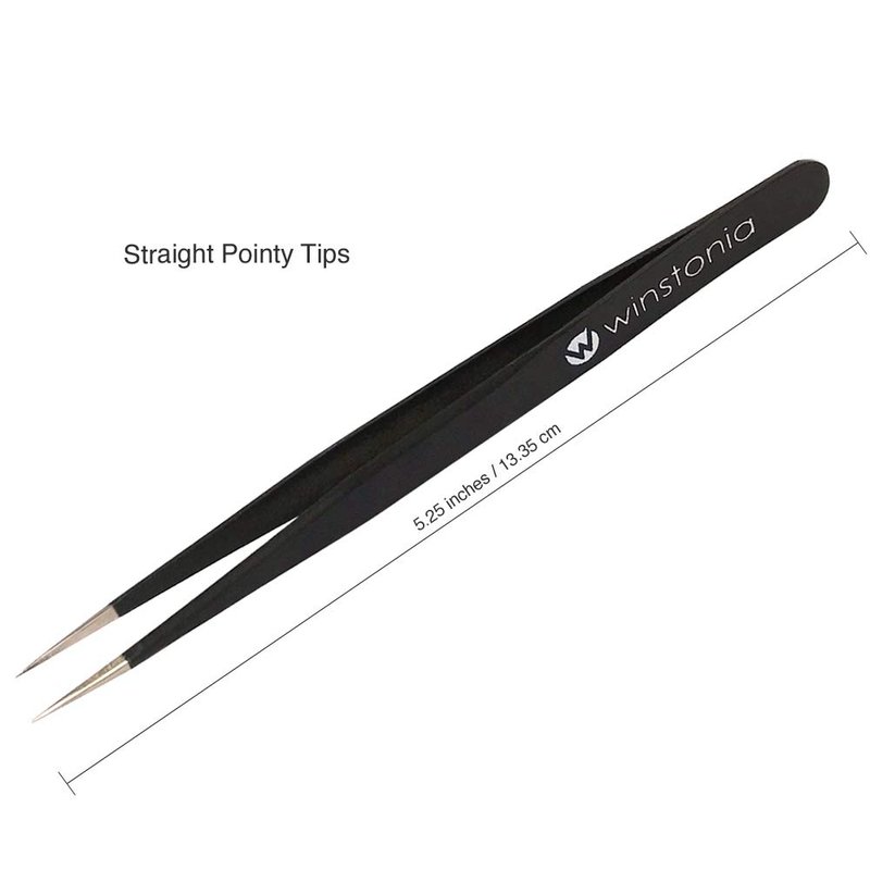 Winstonia 2 Pcs Tweezer Set - Stainless Steel Pointy Professional Beauty Tools - Manicure, Jewelry, Blackhead, Ingrown Hair, Splinter Removal Tweezers