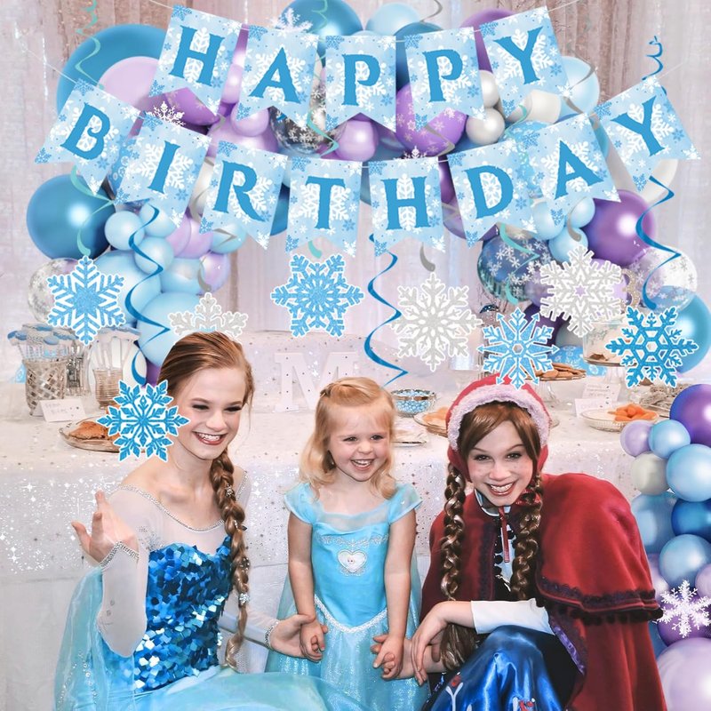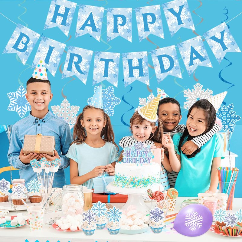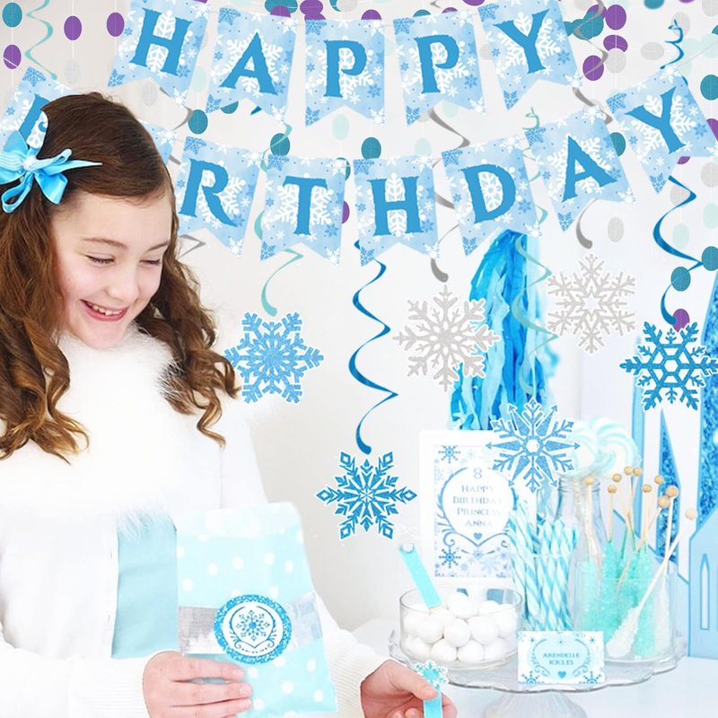 - 【Festive Decor】: Our snowflake birthday party banner will turn any party into a winter wonderland. This set includes a 'Happy Birthday' banner, hanging paper snowflakes, and swirls to create a magical winter wonderland atmosphere.