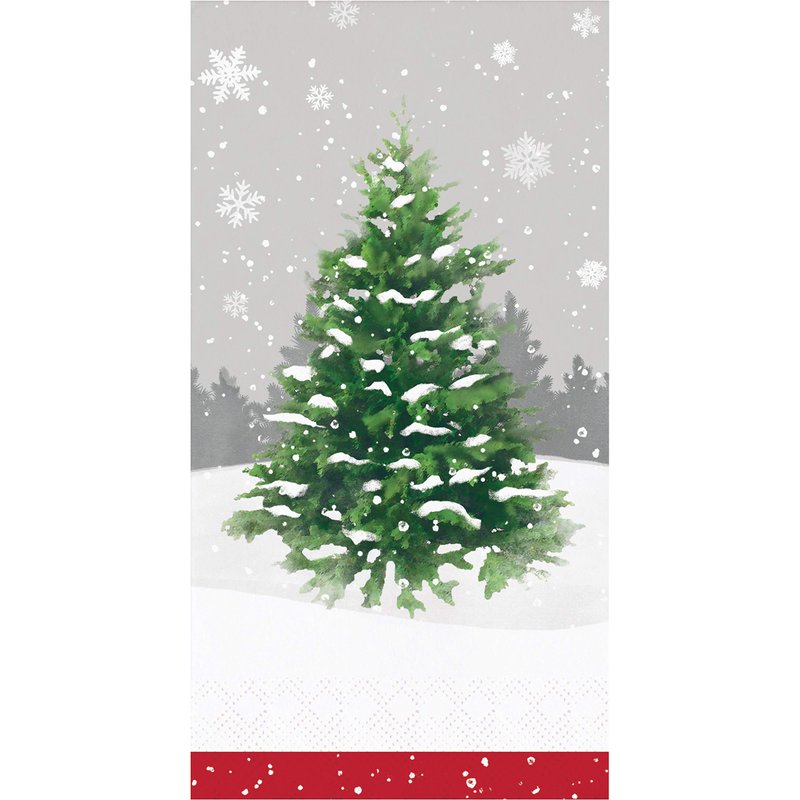 Create an elegant Christmas vibe with these Winter Tree Dinner Napkins or Guest Towels. Featuring a snowy background with a vibrant green tree centered in the middle, these dinner napkins are the perfect addition to your celebration. Measuring 8" x 4" and sold in packs of 48, these napkins can be paired with any other Winter Tree party supplies or used solo as disposable guest towels.