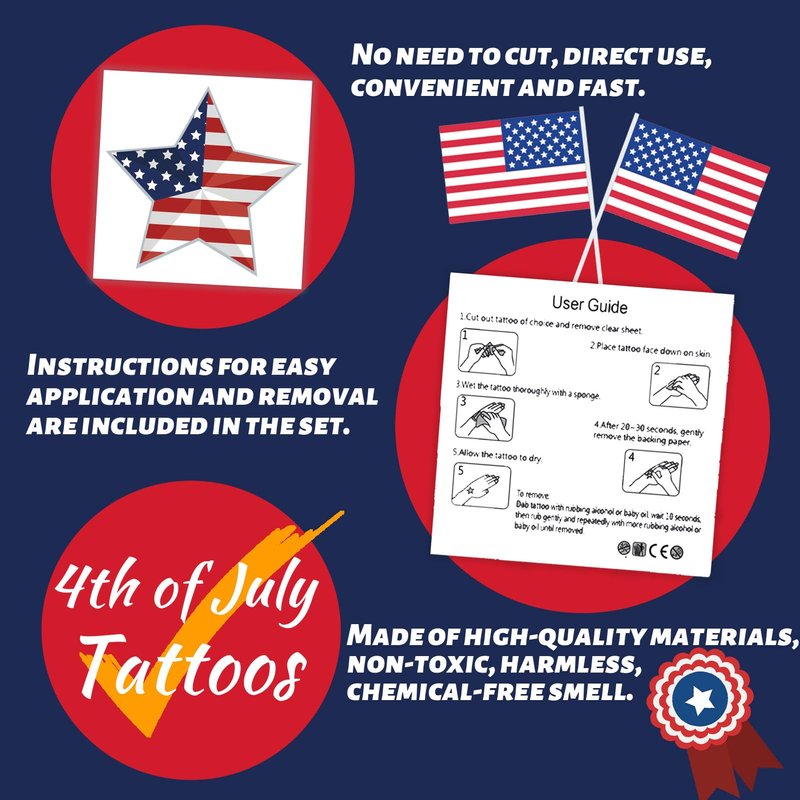 - Great for U.S. Presidential Election: Perfect for 4th of July party and classroom game, Independence day. These tattoos perfect for Independence day celebrating! They will let you show your patriotism and pride and make you unique in the crowd.