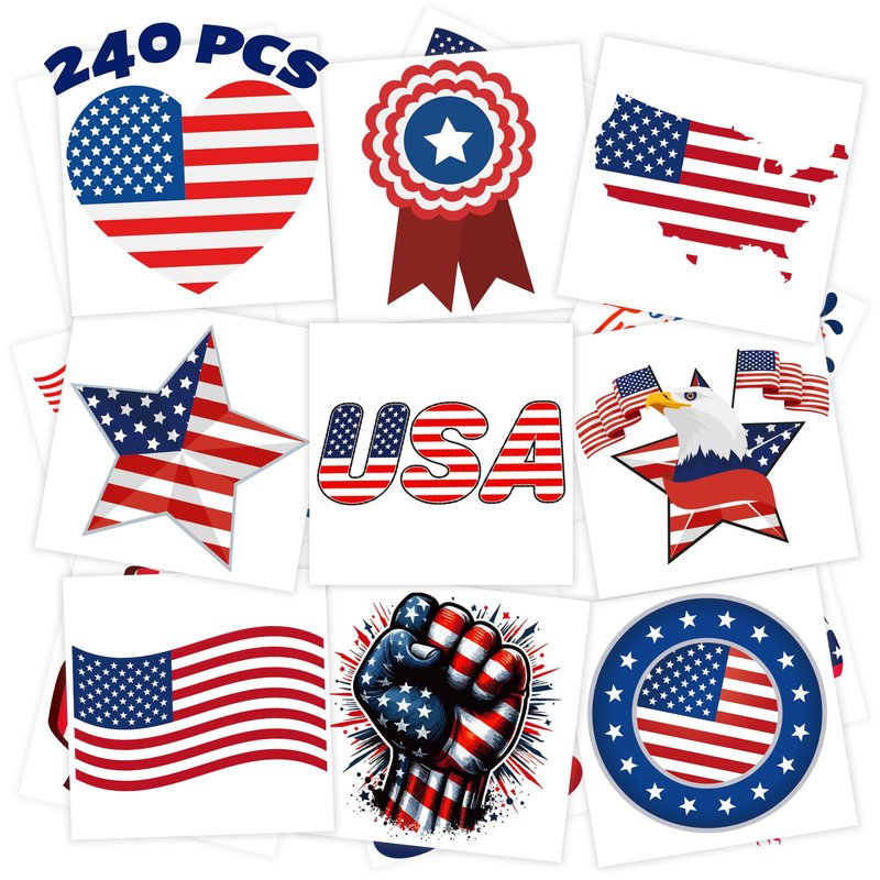 - Great Value Pack: You will get 240 Pcs USA themed temporary tattoos is individually wrapped, 60 pattern in one pack for all your needs. Such as Statue of Liberty, USA Maps, Eagle, Stars, American flags.