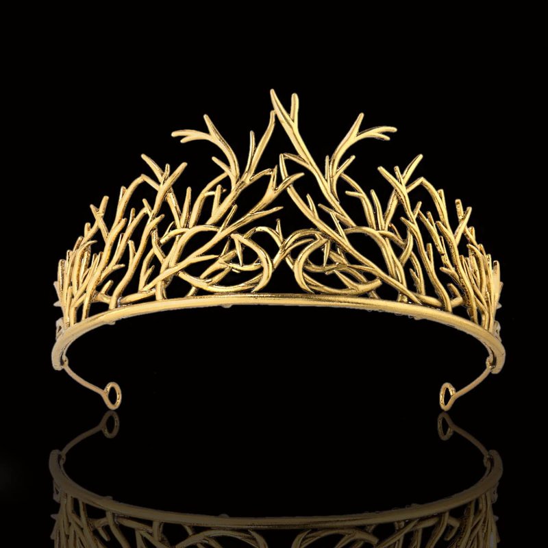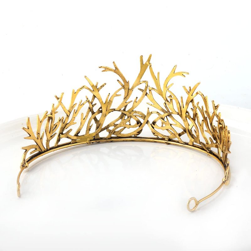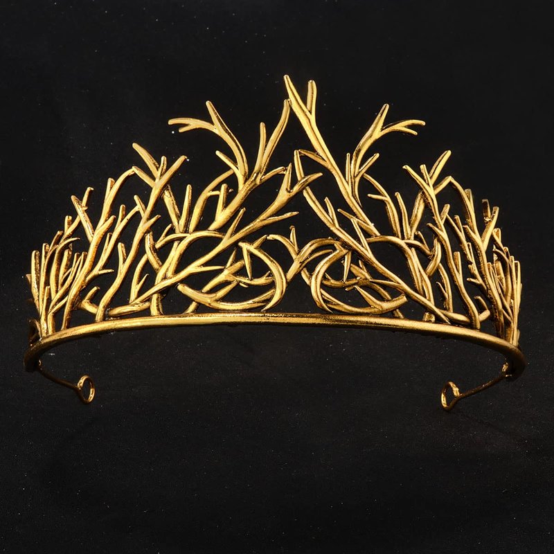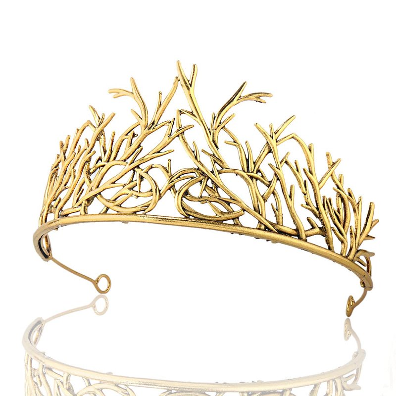 winvin Alloy Branch Crown Queen Crown For Cosplay Birthday Wedding Halloween Costume Party Decorations (Dark Gold)