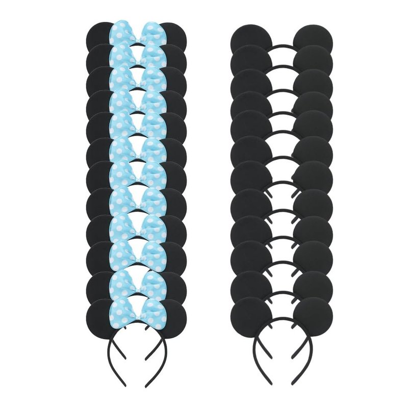 winvin Set of 24 Mouse Costume Deluxe Fabric Ears Headband White Polka Dots Bow Boys Girls Birthday Party Hairs Accessories Baby Shower Headwear Halloween Party Favors Decorations (Blue)