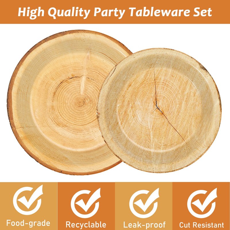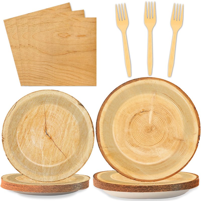 - 【Perfect Camping Hunting Party Complement】This Rustic Wood Tree Party Supplies Tableware Set is the perfect addition for baby shower, boys, girls, kids, teens, adults and any age birthday party, picnic, BBQ, summer fishing get-together and more!