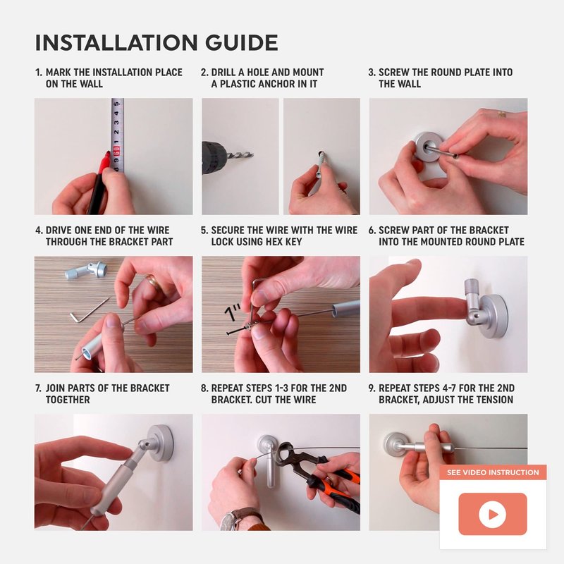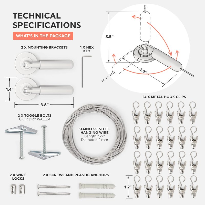 - VERSATILE WINDOW ACCESSORY - The clips in this curtain wire hanging system are size and angle-adjustable. We even included necessary hardware like plastic anchors, wood screws, and toggle bolts.