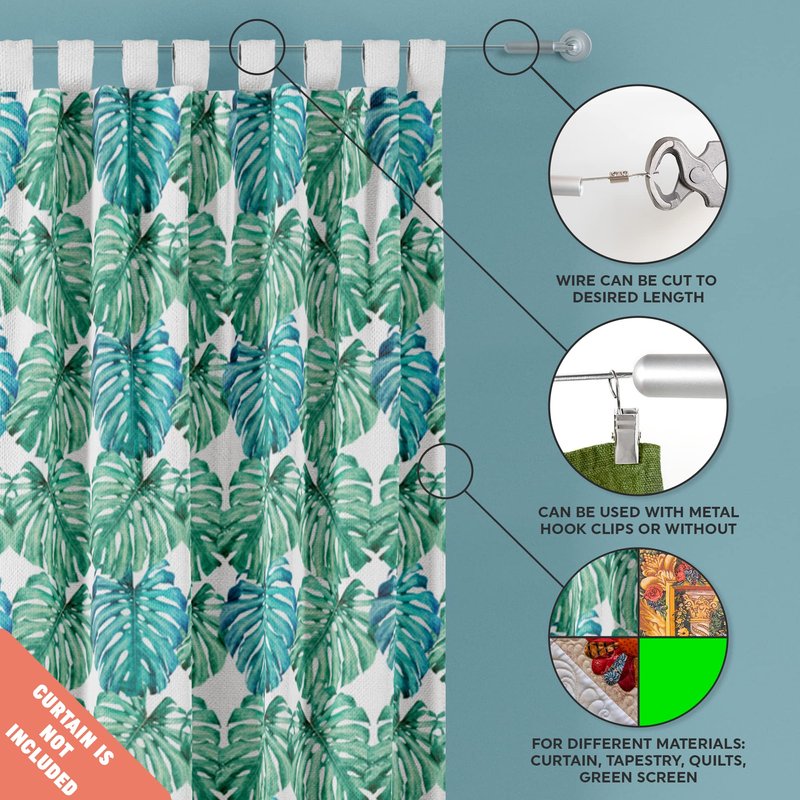 - STYLISHLY HANG YOUR CURTAIN WITH EASE - Cover your windows with elegance using this curtain wire system. The decorative household essential comes with 24 alligator clips to hook your curtain.