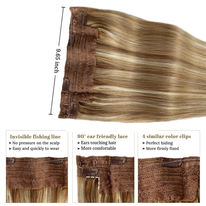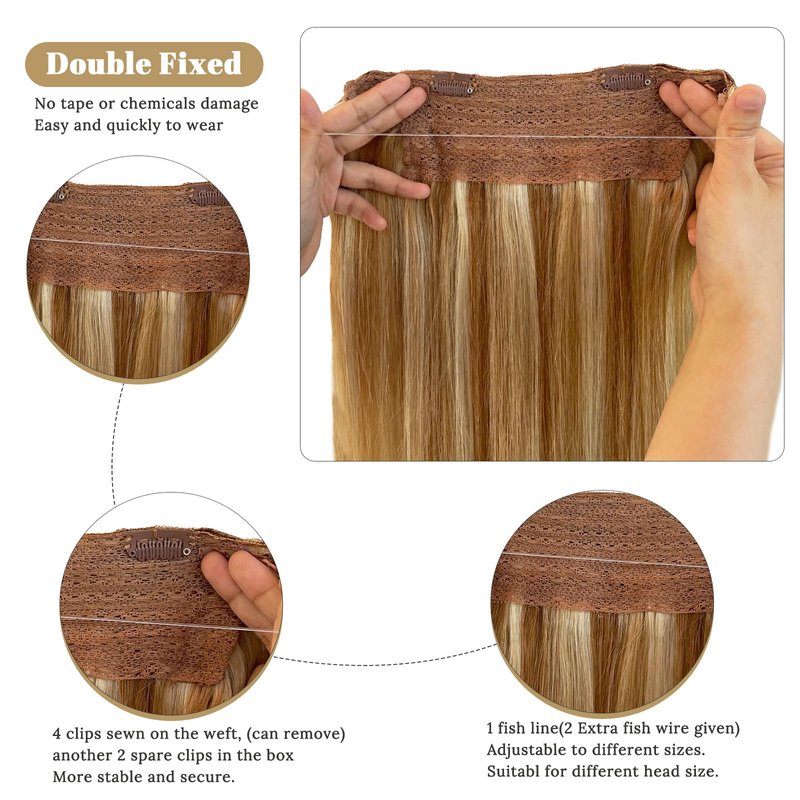 - 【More Comfortable & Natural & Lighter Wire Human Hair Extensions】Unlike Traditional Human Hair Extensions, This New Invisible Wire Hair Extensions Real Human Hair Is No Tape No Glue,No Tangle, No Shedding, Silky Straight And Soft. With Hidden Transparent Wire, Can Blend Perfectly With Your Hair Color.
