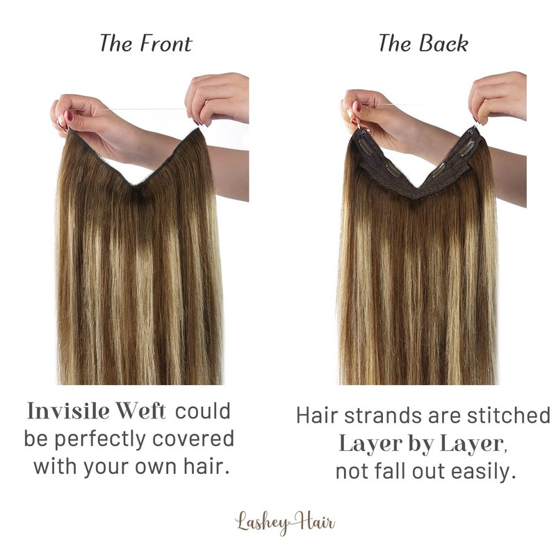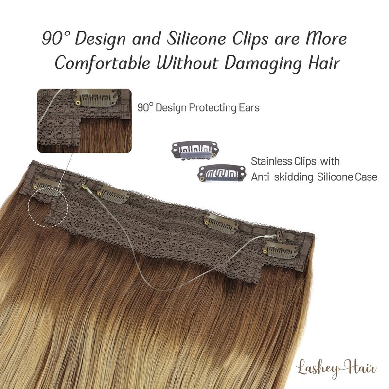 - More Comfortable & Natural & Lighter: Unlike traditional hair extensions, this new wire hair extensions is no tape no glue, with hidden transparent wire, can blend perfectly with your hair color. Our wire hair extensions weft’s width is made according to measure head circumference which is 10.9 inch. The lace net is 90-degree curved design to prevent your ears from being rubbed by the weft