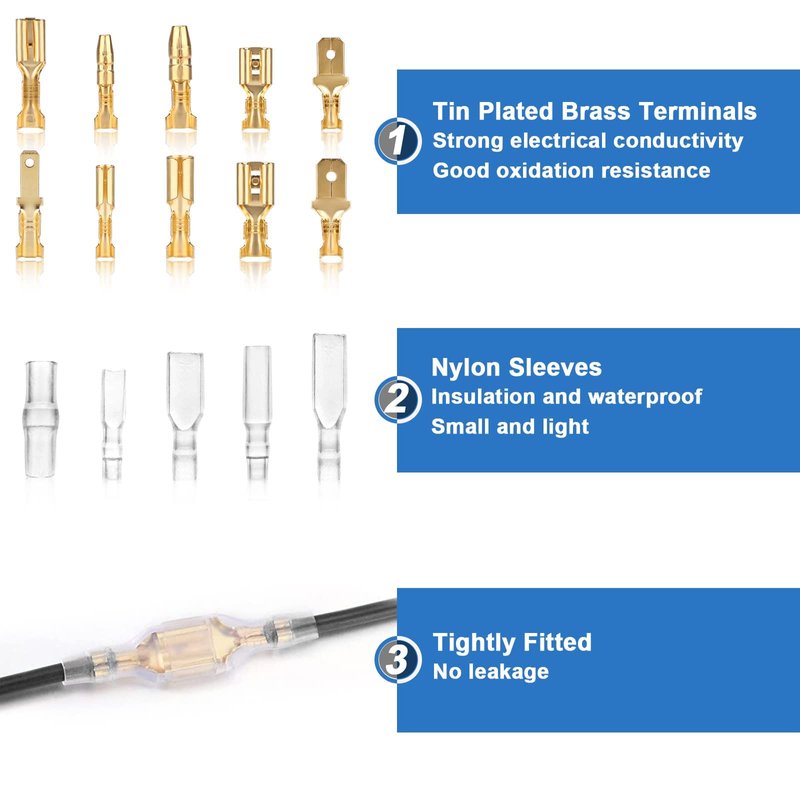 - Premium Material: The terminal block are made of tin-plated red copper and the insulating sleeves are made of nylon. High conductivity, anti-oxidation, durable enough for most wiring projects.