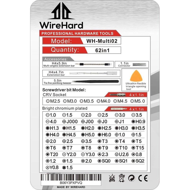 WIREHARD 62 in 1 Precision Screwdriver Set Computer Repair Tool Kit with Extra Magnetic Specialty Steel Multi Bit