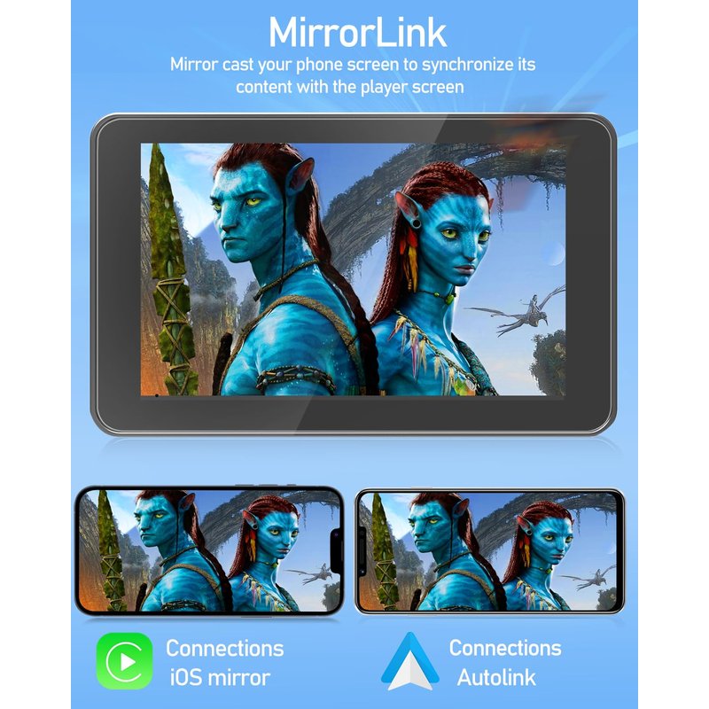 - 【7’’ HD Car Touch Screen & Mirror Link Function】The Portable Bluetooth car radio supports smartphone mirror link function for both Android & IOS with 1024*600P car touch screen,its great to mirror movies for kids to watch on long trips, easily sync Youtube, TIKTOK Videos, Nefilx, vedio, GPS,enjoy the high-definition large-screen video experience.