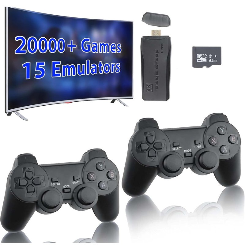 - 🎮【Built-in 20000+ Classic Games】This wireless TV game console built in 20000+ rich games, is pre-install 9 emulators, and pack with 64GB TF card. No need to download and install by yourself, no internet required
