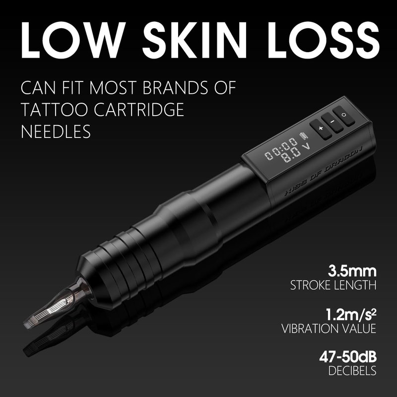 - 【⚡️ Coreless Motor Tattoo Pen】: Custom corless motor, 3.5MM stroke length work well for liner and shader. Effortless to cover and protect. Efficient cartridges change and replacement. It uses a gear transmission structure which makes the machine more powerful, low vibration, low skin loss, fast coloring, no hot for long time working.