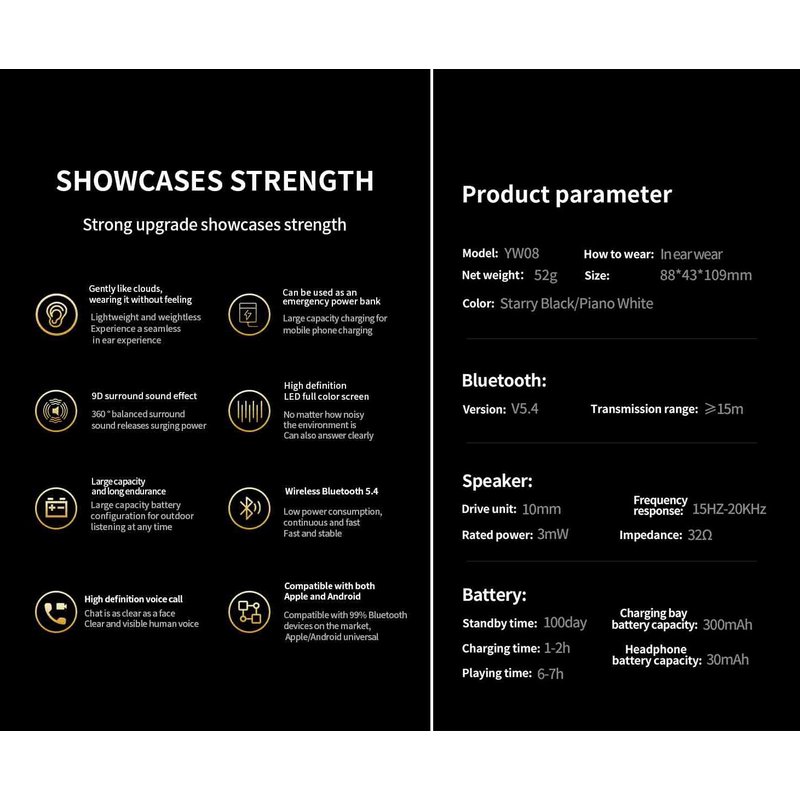 ⚡Black Round Style of Wireless V5.4 Bluetooth Earbuds Compatible with Vivo V9 with charging case for In Ear Headphones.)🎵Includes Convenient Charging/storage case for earbuds, TWO different size earbud tips (small, large), user manual and USB-C Charging Cable.🎧FEATURES:🎧 ✅Uses the new Wireless Version V5.0 technology to provide a more constant stable connection with less power consumption.✅Noise-isolating earbuds deliver high-quality sound and built-in dual microphones deliver clear communication between you and your caller.✅Voice notifications inform you when there is an incoming call, battery level and when earbuds are paired with your device.✅Multifunctional button on both earbuds allows you pause music, answer/reject/hang up a call and activate voice notifications.✅Internal rechargeable Lithium Polymer battery offers up 4 hours of talk time, 6+ hours of music and 150 hours of stanby time.✅Also certified that this is compatible with many other smart phones, laptops, computers, tablets other headphone upgrades. 📝INSTRUCTIONS:📝✅Remove earbuds from charging case, they will automatically power on, a blue light will indicate this. ✅Wait for the prompt "Pairing, Left Channel, Right Channel," and this confirms they are synced✅Go to the bluetooth list connection on their list and search for "YW08"✅Click to connect, and both Earbudes will flash blue every 8 seconds indicating a connection
