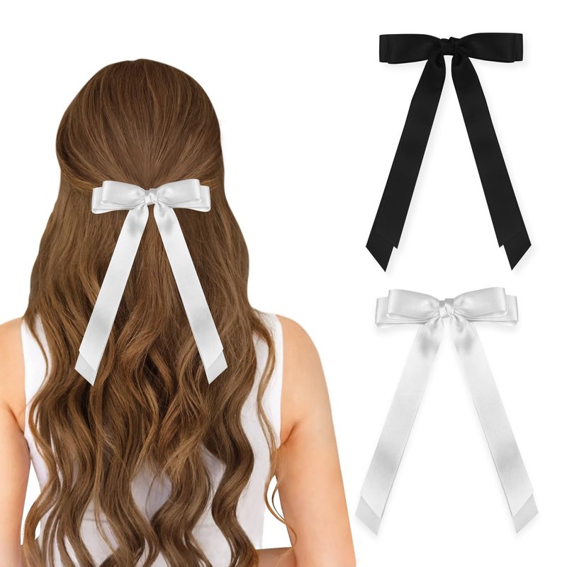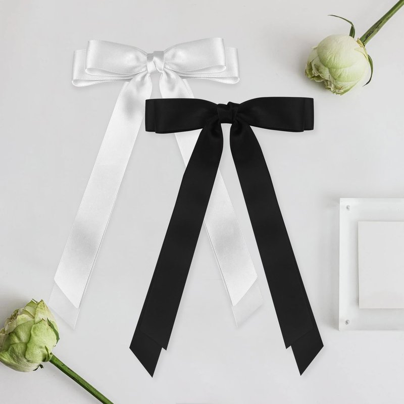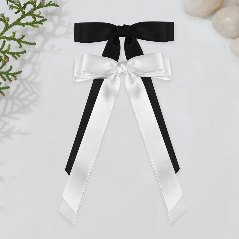 Wironoat Ribbon Hair Clips for Women Cute Soft Silkly Satin Hair Bows Hair Clip Accessories 2Pcs Black White-S