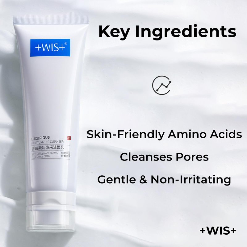 +WIS+ Deep Cleansing Facial Cleanser with Skin-Friendly Amino Acids, Daily Mild Face Cleanser for Sensitive Skin, PH Balancing (3.5fl.oz/100g)