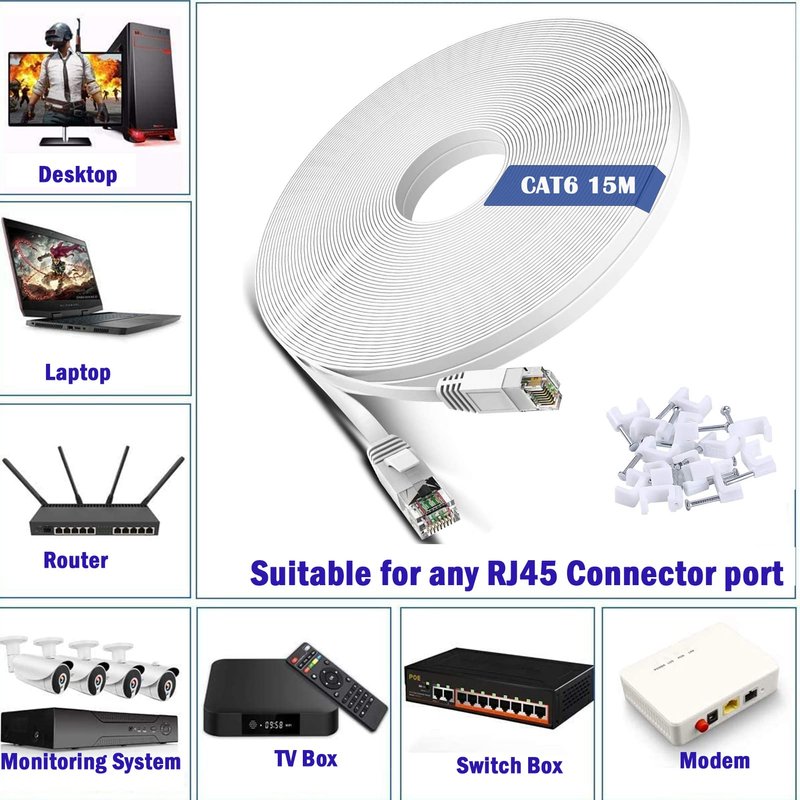 WISCENT Cat 6 Ethernet Cable 50 ft White - Flat Internet Network LAN Patch Cords – Solid Cat6 High Speed Computer Wire with Clips& Snagless Rj45 Connectors for Modem, Router – 50 feet