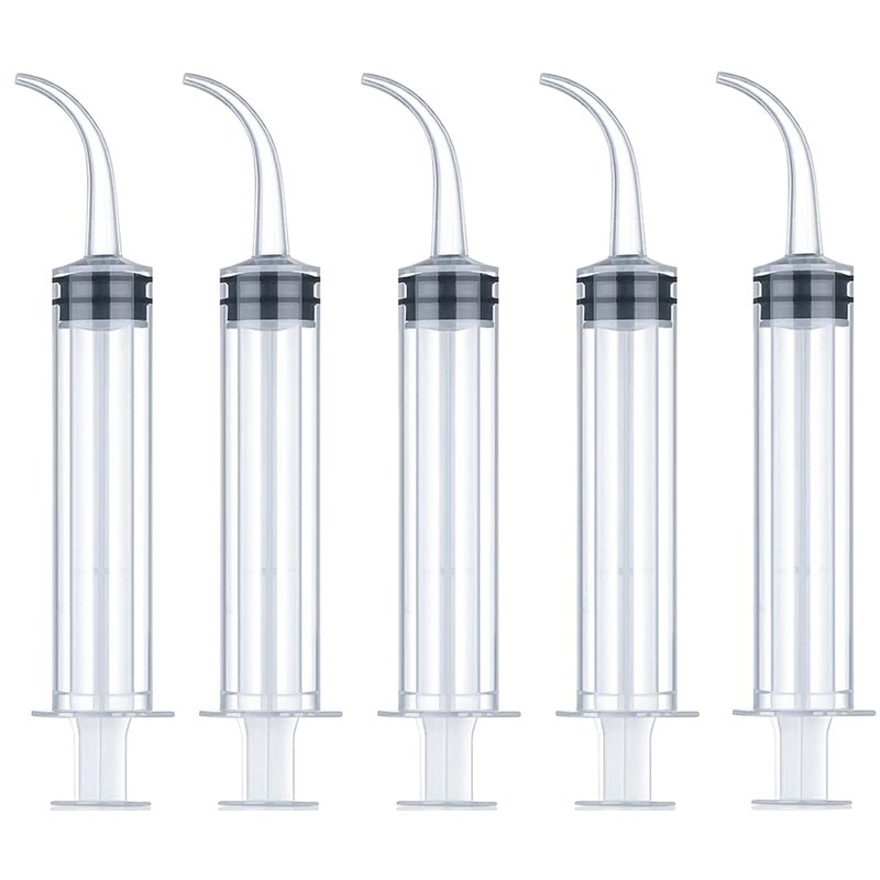 - 5 Pack 12ml Syringes with Curved Tip.
