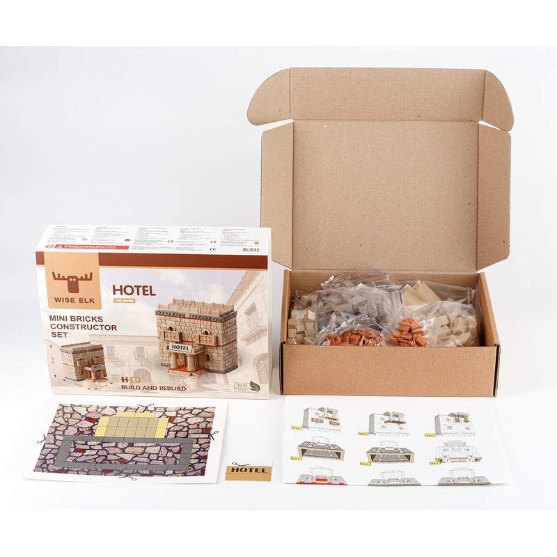 Wise Elk Toy Hotel construction set, real plaster bricks, gypsum reusable building kit, 400 pcs, educational gift