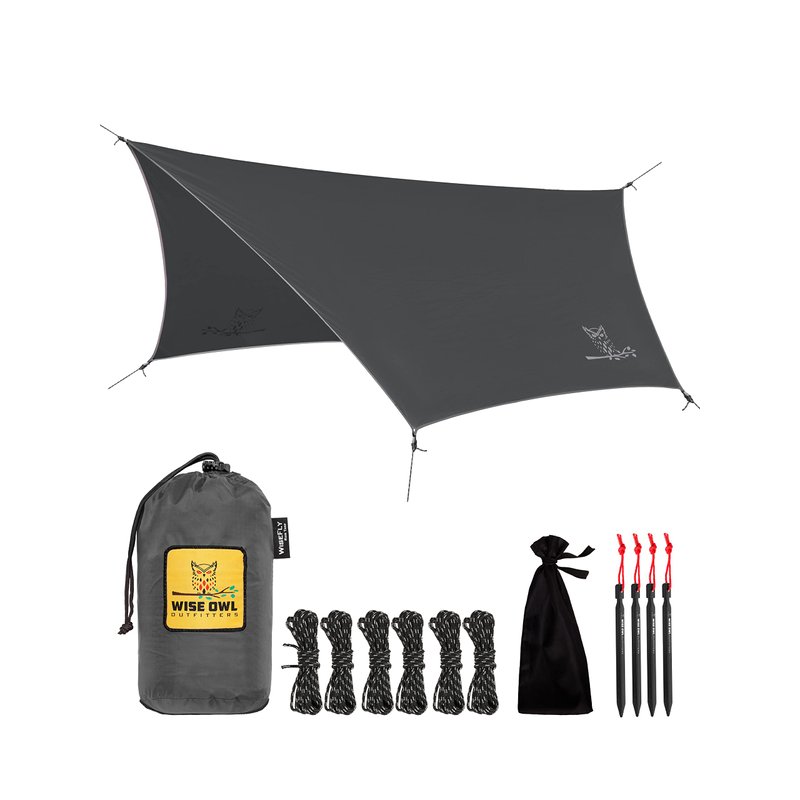 Wise Owl Outfitters Hammock Tarp, Hammock Tent - Rain Tarp for Camping Hammock - Camping Gear Must Haves w/Easy Set Up Including Tent Stakes and Carry Bag - Standard Grey