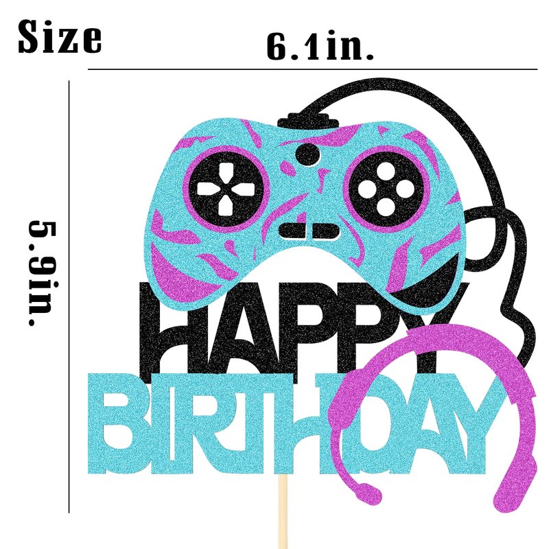 *Specification🏆Color: Blue, Black,Purple🏆Pattern Size: Approx 6.1*5.9inch🏆Material: Double Sided Black Glitter Cardboard*Feature🏆1. Not only can use as cake topper, but also party&home decorations.🏆2. The product has been assembled, no assembly is required, and it can be used directly.🏆3. Decorate for Video Game birthday party, make your birthday more wonderful.*Warm Tips🏆1. Please allow a little error on the size due to manual measurement.🏆2. Color might be slightly different due to the color calibration of each individual monitor.🏆3. Only for decoration purposes, this is not edible and please do not use it in oven or microwave.
