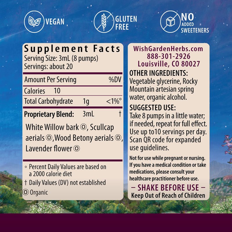 - RADICALLY EFFECTIVE REMEDIES SINCE 1979: We are herbalists, botanists, scientists and naturalists making this supplement to support the upper neck, head and shoulders supplement blend with White Willow bark and Lavender the old-fashioned way, using only the cleanest, most vibrant ingredients for optimal potency, efficacy and safety. Woman-owned and family run, WishGarden self-manufactures all of our liquid herbal extracts in Boulder, Colorado.